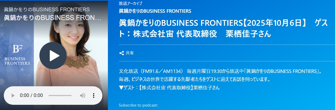 025年10月6日19時30分から文化放送でon airされました。